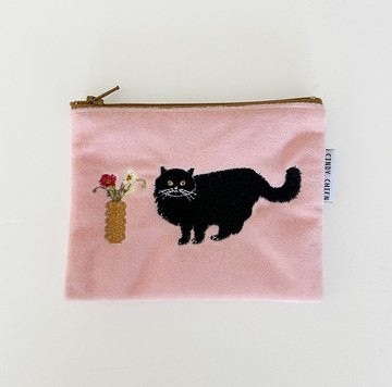 【CINDY CHIEN】春天來了貓刺繡絨布零錢包