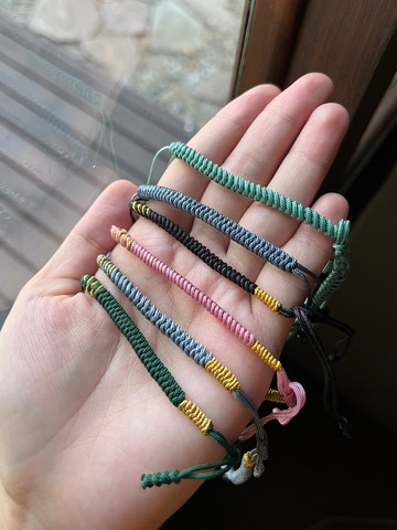 請來信告知手圍,確認尺寸是否適合佩戴喔😊⚠️提醒:繩結類商品為耗材,顏色款式多樣且平價,但產品使用週期短,使用後逐漸出現鬆弛、磨損、斷裂為正常現象。減少浸水能減緩損耗速度,但仍需定期汰換。( 需較耐磨耐用之配件,建議選擇K金、925銀製鏈條。)
