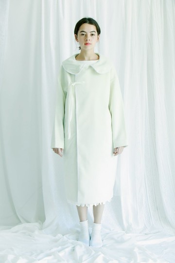 STYLE NO: #RGPF17CO4013 大圓領繭形長大衣 - 均碼,沒有腰圍及胸寬限制,男女可以共穿。- 這是一件中長身的繭形大衣,領子為大圓翻領。- 大衣開口偏右,領邊及開口沿縫上3分絲絨帶作裝飾。 - 開口胸前位置的絲絨帶可以繫成蝴蝶結。 - 兩側均有插袋,衫身及袋均落裡布 。- 材料為羊毛呢,面料挺身稍微有彈性。- 大衣面料暖和親膚,穿著更為質感。