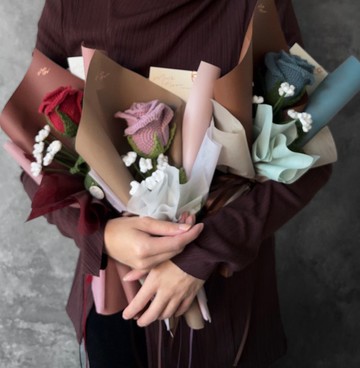 ❧ 晨霧藍|晨間的薄霧,輕輕覆蓋在藍色花瓣上,散發出一種沉靜陪伴的氣息。藍色是自然界中極為罕見的植物色彩,獨特與珍貴,給那位在你心中無可取代的人,表達他/她的稀有與唯一❧ 春芽紫|帶點暖意的柔紫色,溫柔且細膩,特殊的色調,如春日初綻的花蕾。粉紫色帶著一抹暖意,猶如春日微光灑在花瓣上的溫柔光影,細膩且浪漫,溫潤的輕柔可人,為生活增添一份溫暖與甜美的氣息❧ 深酒紅|經典常駐的紅如星球上的獨一無二,熱烈而深情,永不褪色的浪漫。濃郁的酒紅,象徵著不變的愛與經得起時間考驗的深厚情感,如冬日爐火般的暖意撫慰人心,傳遞永恆的溫暖與承諾꙳⋆ 玫瑰與滿天星花束 3色 ⋆꙳以 2025 Pantone 代表色Mocha Mousse 摩卡慕斯 為靈感延伸出三款溫暖棕色包裝𓇬深酒紅 x 溫暖紅棕:經典雋永與暖意交織,被黑巧克力包裹的甜蜜𓇬晨霧藍 x 古典木棕:溫潤的交織,沉靜的藍注入溫暖,低調與優雅的結合𓇬春芽紫 x 溫柔杏棕:溫潤的杏棕色,如同奶油與杏仁組成的甜點般輕柔雙層細緞帶如巧克力般絲滑♥️溫暖的色調讓每一束花都成為情人節的最佳心意無論是送給另一半、家人,或是自己希望這份柔和而溫暖的花束都能傳遞你的愛與祝福⋆ 花束附贈透明提袋與空白卡片⋆ Love you手繪貝殼吊墜為加購項目,送禮推薦⋆ 可加購代寫卡片服務(25字內不含標點符號)