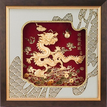https://cdn01.pinkoi.com/product/8NpMD3JR/0/1/800x0.jpghttps://cdn01.pinkoi.com/product/8NpMD3JR/2/800x0.jpghttps://cdn01.pinkoi.com/product/8NpMD3JR/3/800x0.jpghttps://cdn01.pinkoi.com/product/8NpMD3JR/4/800x0.jpg**【創作理念】****999高純度金箔製作****金有吉祥喜氣可招來財運與人緣!**https://img.shoplineapp.com/media/image_clips/65cf332c22d10a0011709019/original.jpg?1708077868**祥龍獻瑞:** 龍是中國遠古傳說中的神或英雄,善變化、興雲雨、利萬物。龍紋用於祭祀器物的裝飾,或被描繪成神仙的坐騎;龍漸漸與水有關,成為「主水之神」;而從漢代開始,龍又逐漸與黃權聯繫在一起,元明以後更是象徵帝王,在民間則比喻男子,到了近代,已成為華人心目中最尊貴的吉祥物代表,有神武、力量、卓越、掌財的象徵 。https://cdn01.pinkoi.com/product/8NpMD3JR/5/800x0.jpg**本件金箔畫經過許多工序。將畫面剪、刻、捏、膠等不同方法 ,每一步都凝聚著,創作者的靈感與創意,用手工技藝完成一幅美麗的金箔畫,演繹生活的傳奇。****【產品特別敘述】**https://img.shoplineapp.com/media/image_clips/65cf2ce376926a7c5ef1fcd2/original.jpg?1708076259**「藝術生活化」**一直以來都是我們所追求的目標,將傳統紙雕與高貴的金箔相結合、一直是我們的願望。我們經營團隊經過長時間的構思與研發,終於克服種種困難,推出立體金箔畫系列產品。製作一幅立體金箔畫比想像中難多了,需要花上很長時間。首先要經過嚴格選材、取材、創意構思,完成素描稿,確定整體效果,再經過立體思維方式,將畫面分割成數以千計小塊,並運用傳統的剪、刻、捏、膠等不同手法,再經過上千人手工序,嚴謹製作而成。立體金箔畫的每幅作品都是由經營團隊 - 台灣專業設計師精心設計而成,無論是畫面的安排、產品的表情、處處都能見到設計師的巧思而作品的文字、落款也都取自王羲之、顏真卿、趙子昂等名家手筆。https://img.shoplineapp.com/media/image_clips/65cf2ced34dd0fabfd4540b2/original.jpg?1708076269在您欣賞作品之餘,亦能體驗博大精深的民族藝術。因此立體金箔畫不僅有很高的藝術價值和觀賞價值,更是您送禮饋贈的最佳選擇。**【所謂客製服務如圖所示】**https://cdn01.pinkoi.com/product/8NpMD3JR/1/800x0.jpg**(圖片範例,商品以您購買為準)****貼心之語:**本公司出品金箔系列商品 純金保證── 堅持採用含金量達99.9% 高純度金箔製作。本產品為現代工藝使用之金箔,其價值在手工藝之美;如欲重新熔解還原為純金使用,不符成本,請勿信不肖業者之言。https://img.shoplineapp.com/media/image_clips/6534635ee1d3ca455f22bb0d/original.jpg?1697932126**(隨貨附中.英.日 【金箔工藝簡介】說明書)**https://cdn02.pinkoi.com/product/DkCTLrA5/4/800x0.jpg**(隨貨附中.英.日 【祥龍獻瑞】說明書)**https://cdn02.pinkoi.com/product/DkCTLrA5/5/800x0.jpg**畫框背面圖示**https://img.shoplineapp.com/media/image_clips/64c7b9118baf15000d354f27/original.jpg?1690810641**附精美紙盒和手提袋**https://img.shoplineapp.com/media/image_clips/64c7b5b38bc464000d2c60a7/original.jpg?1690809778**寄送完整外箱包裝,安全有保障**https://img.shoplineapp.com/media/image_clips/65411b50fafb680020502567/original.jpg?1698765648**【商品資訊】**編號:23HJD-XR3030-05品名:24k足金金箔製作金箔掛畫【祥龍獻瑞】材質:999純金金箔製作尺寸:外框30cmx30cmx3.6cm±5%(大約)重量:2810g±5%(大約)-含包裝盒包裝:精緻手工紙錦盒包裝尺寸:32.5x32.5x6.5cm±5%(大約)