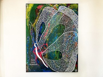 蝴蝶繪畫《微笑.愛.探險2 》butterfly painting - Smile Love Adventure 2作品的主要色系為綠色、藍色及黃色,帶著大自然森林的氣氛,畫面中間有一隻單獨的蝴蝶,代表獨立與自信。牠張開翅膀去感受大自然的一切,單獨曼妙舞蹈將大自然的能量融入身體,有著淡淡的清透及舒暢感。畫面左下用英文寫著 Smile Love Adventure 「微笑、愛、探險」,這是我自己最喜歡的三個詞彙。當我們開始用笑容迎接來到生命的每一刻時,將會感受到真實的愛,而人生就如同一場探險,每天如此的驚喜如此多變,我們無法預知未來,只有珍惜現在,此時此刻。讓我們一起用微笑及愛,來探索每一天吧。台灣是熱帶及亞熱帶間的島嶼,擁有許多不同型態的生態系,因而蝴蝶的品種多樣,生物學家給了台灣蝴蝶王國的美名。這也是我喜愛用「蝴蝶」來當繪畫主角的原因,蝴蝶的身形很像人,畫中的蝴蝶就像是生長在台灣的您我。透明蝴蝶的靈感,來自亞馬遜雨林的神奇蝴蝶,牠們的雙翅如玻璃般透明,您可以從他的翅膀中看到森林一草一木,畫面充滿謙遜與祥和,萬物彼此尊重,接受來到生命的一切。期待您會喜歡這幅寧靜清透的作品,一幅與大自然融為的畫面。尺寸:60.5 x 80公分媒材:壓克力顏料、畫布影片:https://youtu.be/NnQt2dGMQWU