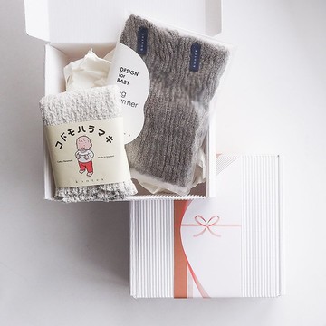 【kontex】保暖蓬鬆肚圍腿套禮盒 (附提袋) 寶寶 週歲禮 日本製