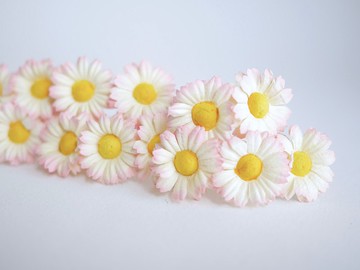 紙花,25 片 DIY 小雛菊花,尺寸 3 厘米,桃紅刷子顏色