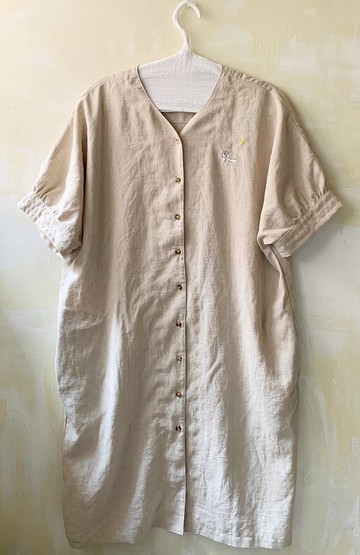 一張理想家庭的插圖延伸一件長版洋裝的刺繡圖9顆鈕扣v領側口袋澎袖及裝飾線白色許多細節⋯作品故事這樣寫著:「理想家庭白色小屋一件可當外套的洋裝可以悠遊散步工作時寬大的衣領似乎也有了很長的呼吸那似乎是可以飛翔的洋裝啊~」材質:棉麻尺寸:衣長:108cm肩+袖長:40cm袖口:38cm (全圍)胸寬:128cm(全圍)