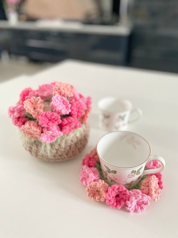 編織鉤針花朵杯墊