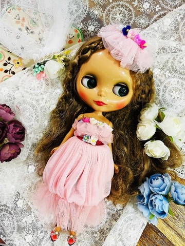 日光小巷-手做粉紅浪漫風情blythe 小布娃衣 Holala娃衣