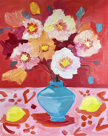 牡丹靜物,紙上水粉畫,野獸派藝術,馬蒂斯靈感