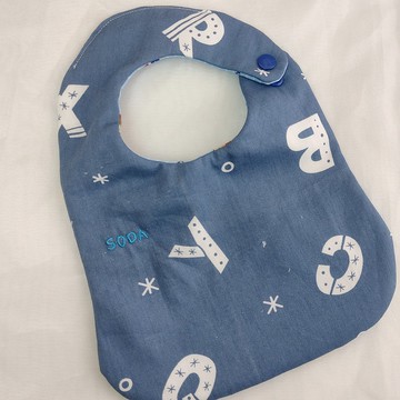 【商品說明】👉雙面圍兜 / 吃飯兜 / 口水巾 / 圍兜型拍嗝巾👉款式選擇: 藍 *每條圍兜的圖案分佈不盡相同,背面由設計師配色,依實品為準👉正面可以繡名字(訂製需5工作天不含六日),限3中文字或1個英文名字不含姓,請訂單備註告知名字及性別👉2段式頸圍,大小寶貝都適用👉 https://www.pinkoi.com/store/jo2handmade?tag=%E5%9C%8D%E5%85%9C&i18n_tag=%E5%9C%8D%E5%85%9C (【按這裡】)看館內其他款式圍兜【材 質】雙面薄棉布;中間四重紗布;塑膠釦【注意事項】1-\t使用過後若有髒污,請用洗衣精手洗後用布壓乾,然後置於通風處自然風乾。不可機洗、脫水以及烘乾。清洗後若有皺摺,可熨燙平整。2-\t照相及螢幕色差無法避免,若有疑慮請事先留言溝通3- 館內所有布類作品(含包釦)在製作前,所有的布都已先下水做預縮、定色處理。