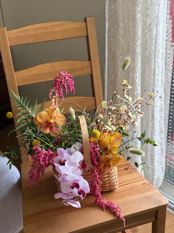 蘭花為主的鮮花提籃設計🏷️商品尺寸:長33寬18高33公分🏷️此款鮮花提籃請提前七日預訂或先聊聊您希望的出貨日期時間⚠️主要以拉拉快遞出貨雙北縣市為主或外縣市冷藏宅配🏷️花材:各色當季蘭花、金仗球、蕨類、柔麗絲、尤佳利葉…等等,若遇季節或氣候因素花材短缺,請接受由設計師幫您更換其他花材。🏷️鮮花觀賞期約3-5天,需每日於中間海綿注水約100-150c.c🏷️因每個自然花材本身姿態都會有所不同或差異,請理解不可能每件作品都會與照片完全一模一樣,若有特殊尺寸或其他色系之需求都歡迎私訊討論🏷️ 自取地點在永和頂溪捷運附近更多花藝作品歡迎參考IG:艸心 花藝與繪畫工作室IG:艸心handcraft_by_xy