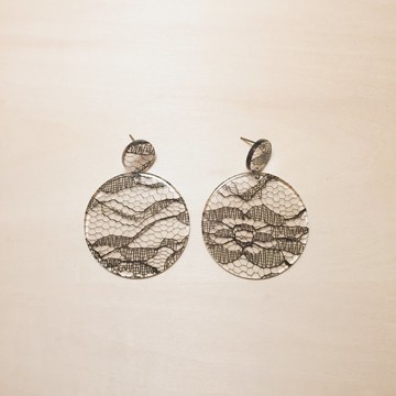 復古黑蕾絲大圓片耳環