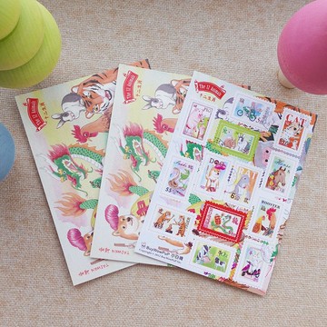 /商品內容/★郵票貼紙:12生肖台客生活共13款鼠 牛 虎 兔 龍 蛇 馬 羊 猴 雞 狗 豬 ,另加上貓★明信片:12生肖台客生活團圓版/尺寸規格/郵票貼紙:整張尺寸148mmx105mm,每一枚2cmX3cm ,13款各一枚共13枚。明信片尺寸:148mmx105mm。 /材質&使用/明信片材質:420g頂級象牙卡,另人滿意的紙張厚度貼紙材質:模造紙,可書寫可蓋章。裝飾性質的仿郵票貼紙,不同於有價郵票,不能折抵郵資,可使用於postcrossing、手帳、日記、裝飾、收藏、包裝...。/產地&製作/Made in Taiwan / Designed by Buywowpup