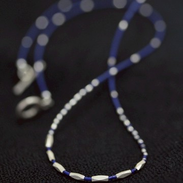 這款手工項鍊由微小的夜藍色美麗青金石珠子組成,混合了小銀粒和7個手工製作的銀色飾片。青金石在許多古老的文化中受到重視,是智慧,友誼和真理的普遍象徵。這根繩子連接在一個圓形的肘節鉤上,飾有微小的“Podduang”圖案,是典型的Thai Karen山地部落人。它可以與我們商店的配套手鍊或類似款式的產品相結合。這是一款簡單而優雅的單品,可以在任何場合輕鬆佩戴。這套項鍊/手鍊也是一件可愛的禮物。所有銀色部件均由泰國凱倫山地部落工匠以95-98%的銀手工製成。凱倫是一群少數民族,主要居住在緬甸南部和東南部以及泰國北部和東北部。每件作品都是手工製作和個性化該產品採用傳統的泰國包裝,並包含跟踪號碼,以便更安全地運輸。通過購買此產品,您可以直接為泰國的當地藝術和手工藝品提供維護和支持。長度:42厘米