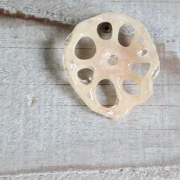 將真實的蔬菜蓮藕乾燥後製成胸針。表面施以閃亮的樹脂塗層。「咚咚咚。」在製作蓮藕金平時,咦!? 蓮藕原來這麼可愛!!!?那截面獨一無二的造型。蓮藕真的很可愛。正因為是自然的色澤,所以能與膚色完美融合,易於搭配。可作為衣物、包包、帽子等的點綴。亦可穿上鍊子作為項鍊配戴。充滿玩心、可愛又帶有自然氣息的蔬菜飾品。光是看著,就讓人感到*溫馨*。由於使用天然素材,可能會因保存狀況及歲月流逝而有褪色現象,敬請見諒。也請您享受其轉變為復古色彩的過程。蓮藕尺寸 約2~3cm胸針金屬扣尺寸 約2cm整體尺寸 約3~4cm因使用天然素材,每個商品尺寸會有些許差異。