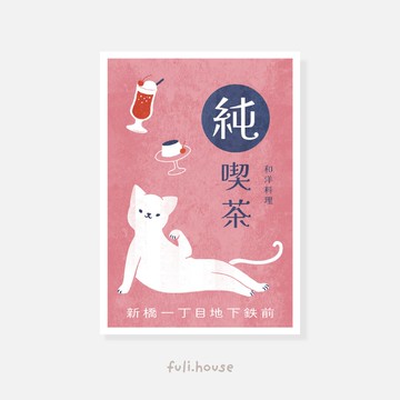 **純喫茶 海報**純喫茶 · 昭和時光機回到那個溫暖又簡單的年代。材質 l 鬆厚紙 180g/㎡尺寸 l 297mm*210mm ( A4尺寸 )包材 l opp袋平攤包裝 含厚紙板 防凹損IG:福栗舍 Fuli.House