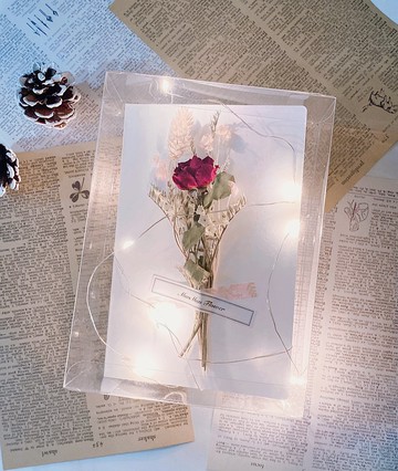 《尺寸》商品尺寸 10x15 cm整組含透明盒與燈串卡片可打開書寫✍️ 也提供代寫服務喔!如需代寫卡片請訂購後附註或私訊設計師提供內容,並告知卡片寫內頁或背面(可直接看到卡片內容)《粉專》Instagram | 漫漫享花 manman_flowerFacebook | 漫漫享花 manmanflower520《花材》1.以乾燥花及永生花材製作《保存》1.乾燥花及不凋花建議擺於通風乾燥處,勿碰水,盡量避免光線直射, 會加速顏色的褪色。2.若天氣潮濕,部分不凋花花材會出現透明的現象,建議可以開除濕機保持花朵乾燥。3.若作品上有灰塵,可以使用吹風機最弱風速,吹落灰塵。4.花材若有發霉情況,可用酒精噴灑擦拭後自然乾燥,若嚴重發霉的花材請丟棄,避免影響其他正常花材。《包裝》會使用適切防撞材料包裝寄送。《訂購須知》1.照片為實品拍攝,作品皆純手工製作,因使用天然乾燥花材,型態樣貌會些許不一樣,無法保證作品一模一樣。2.乾燥花材本身脆弱,運送開箱中可能會有些微花屑掉落,完美主義者請審慎評估後再下單。3.因花材皆是季節性天然植物,如遇花材缺貨,會以其他適合的花材依照色系美感更替,請相信設計師的專業,我們會以專業素養及美感設計每一樣商品❤️4.如收到商品有任何問題,請不要急著給予差評,煩請和我們聯繫會盡快為您處理🙏