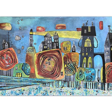 童話城市畫作 奇幻原創藝術 水彩壁掛藝術 多彩藝術品