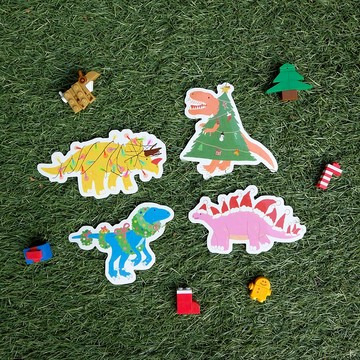 防水貼紙+明信片套組 | 聖誕節恐龍有點ㄎㄧㄤ系列