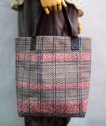此手挽袋特別之處是利用皮革紙作為材料, 我們所認識的皮革紙正是牛仔褲後面的那塊厚厚的招牌紙塊, 而且耐用防水。將淺棕色皮革紙剪成條加入其他棉線再織成布料, 每個袋款會有所不同。布料內已加厚, 亦加有內里布可承受相當的重物, 可放置大於A4 雜誌書本或 厚身的書本也可輕鬆放入。手挽帶是棉布料。內有磁石扣, 可防止物件掉下。尺寸 約 35cm(h)X36cm(w)X10cm(d)產地/製造方式香港免運費