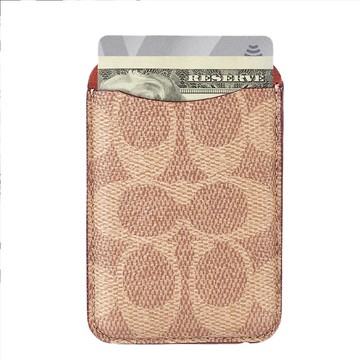 【COACH】精品MagSafe義大利真皮卡套 經典卡其