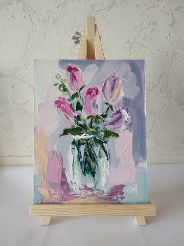 花抽像畫。鬱金香畫。原創藝術。繪畫牆藝術。