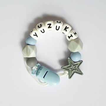 YUZIKI 星星 藍灰 奶嘴鍊夾 / 客製化奶嘴鏈 可套香草奶嘴27cm