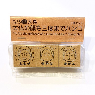 這款評價印章,印面是會讓人噗哧一笑、說著關西腔的大佛像。Eede(優)、Seyana(好)、Akan(不行)W25mm×H25mm×D22mm3個一組材質:握柄/木頭 印面/橡膠made in Japan