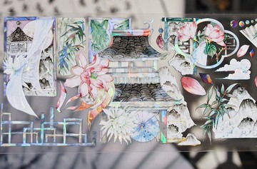 落江南 東方古風造景 PET 紙膠帶 貝殼光 / 割型貼紙卷 星光膜