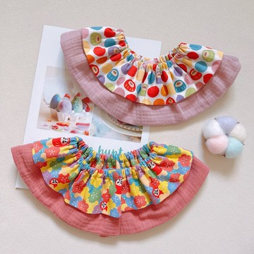 【荷葉圍兜】達摩福神 I 雙層荷葉 I 蝴蝶結髮帶 I 手作圍兜