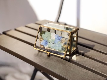押花手寫字句首飾盒/飾物盒子/珠寶盒/生日禮物/婚禮禮物/復古色系-----------------------------------------------------------------【關於這件作品】* 盒子尺寸:6 x 7 x 10cm,字句長度限3-4CM(一般7到8個英文單詞)也可分開兩行寫哦* 所有的字句或單詞為設計師人手寫的,如有特別要求(如加笑臉、愛心或星星等)歡迎跟設計師溝通哦~ * 字句以中文字和英文字為主,日文跟簡單的韓文也可以* 設計館內的商品都是需要訂做的,沒有現貨* 製作期需時10-20工作天,寄送時間一般5到10個郵政局工作天,建議先向計師查詢喔* 關於花朵的設計和文字請跟設計師聯繫* 設計的花朵樣式和色系都可以選擇喜歡的,歡迎互相討論* 花朵都是獨一無二,即使是同一款式也做不到一模一樣的哦,歡迎訂製專屬你的盒子* 所有商品均是人手製作,或許會有手作製作痕跡或不完美(如氣泡;花的顏色等)不能接受或完美主義者請先向計師查詢* 關於色差: 花材由鮮花立體乾燥完成,不同批次的鮮花或會有色差; 另外不同手機或電腦顯示器顯示出的顏色也會有分別;如不能接受或對色差有疑問歡迎先向我們查詢:)。世界上沒有一個相同的人,每個人也是獨一無二,花朵也是,她們每一朵的形態也有不一樣的美,希望能夠找到懂得欣賞她們美態的知音者。希望能為你的生活中帶來一點美好。 -----------------------------------------------------------------* 歡迎互相討論/品牌合作訂製【訂造/客製流程】1:將商品放進購物車,填寫個人資料2:結帳時,於〈備註欄〉仔細寫上想要客製的文字和想要客製的款式(例如花的顏色搭配,花的種類或設計)。如沒有於備註欄留言款式將會以下單圖片款式製作。* 因為花朵會有不同花期,照片上的花朵未必全部都有哦,歡迎向設計師查詢當季有的花兒哦3 : 收到訂單後在 7 天內以站內訊確認客製細節。 -----------------------------------------------------------------【材料】自製壓花,玻璃盒子