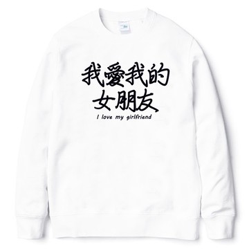 我愛我的女朋友 大學刷毛美國棉T 白色 漢字中文日文文青清新設計趣味禮物情侶情人