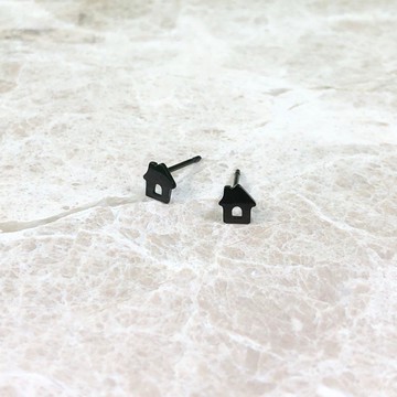 比比趣味嚴選系列-黑色小房子-不銹鋼耳針