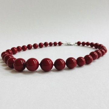 玻璃彈珠漸層全結項鍊/8x16mm約42cm/RED/made in japan這款是採用日本製造的玻璃彈珠項鍊,在玻璃原珠上,以原創的濃厚紅色塗料層層堆疊上色。透過手工一顆一顆細緻打結的全結工法製作完成。深邃的血紅色是概念為「現代時尚」的原創色彩。彈珠尺寸約為直徑8~16mm的珠子,串成漸層,長度則設定為標準的公主尺寸,全長約42cm。項鍊扣使用帶有萊茵石的古典插入式設計。其特色為玻璃彈珠特有的冰涼感,以及表面光滑的質感與細膩度。全結項鍊的特點包括,萬一線材斷裂時損壞範圍最小;彈珠之間不互相緊密接觸,不易摩擦,也較不易產生刮痕;並且更能服貼頸部線條。此種規格尤其在海外廣受歡迎,是相對高品質飾品常見的規格。本產品採用自家工廠塗裝的珍珠。品質狀態良好,無剝落或明顯大礙的刮痕。偶爾可能會有針孔或小凹陷,但皆經過自家工廠檢驗,確認不影響品質且在可接受範圍內。材質…各種玻璃彈珠/8~16mm/紅色/日本製五金…設計款項鍊扣/插入式/鍍銠/日本製尺寸…約8x16mm 全長約42cm/含五金※長度可能有些微誤差。※包裝為OPP袋與緩衝材(氣泡紙)後,放入小紙盒的簡易包裝。敬請事先知悉。※儘可能以實品為準進行拍攝,但因您使用的裝置及螢幕,照片與實品的色澤或質感可能會有細微差異。敬請事先知悉。※若對電鍍等材質過敏,敬請斟酌購買。※電鍍部分,可能因汗水或皮脂等氧化作用而導致顏色有些許變色。此外,珍珠也建議在使用後,簡單地用柔軟的布輕輕擦拭,並儘量收納於無日曬、陰涼處的夾鏈袋或收納盒中,即可較長時間保持良好狀態。