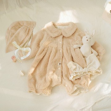 寶寶圣誕主題加厚毛絨套裝新生嬰幼兒圣誕衣服連體哈衣爬服