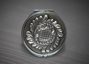 錫雕 綻放的花蕾 精巧隨身鏡