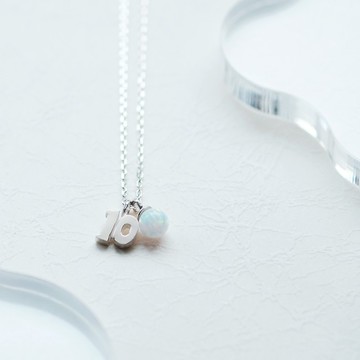 數字 & 10月誕生石 蛋白石項鍊 925銀