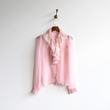 【蛋植物古著】光霞遠雲紗質蕾絲古著襯衫