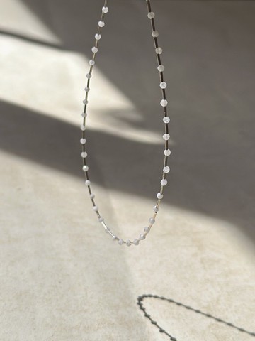 **/ 商品說明及故事 /**白色切角月光石搭配純銀樸實中帶有精緻氣質大尺寸的後釦輕鬆穿戴短鏈尺寸修飾頸部線條**實際商品以平拍照為主**▲材質與尺寸材質|天然石、純銀珠子直徑|2 mm鏈長|41 cm▲產品材質特性與保養說明1.含天然石飾品建議避免碰水、清潔劑及洗銀水。2.尺寸皆為攤開平量的總長度,誤差值±0.5cm。3.金屬氧化可使用拭銀布擦拭。▲拍攝與實物差異1、商品拍攝光源為自然光,我們已讓照片與實物相近,但每個人的螢幕顯示器不同,難免會有些許色差,對於顏色要求較高者,購買前歡迎私訊我們,可以額外拍照給您確認。2、若希望穿著效果接近照片,請參閱上方的Model尺寸欄位,若仍對衣服的尺寸不確定,購買前歡迎私訊我們。▲ 出貨時間1、我們的服飾皆為現貨,出貨時間為1~3天內,皆依照pinkoi系統的訂單順序發貨。2、宅配目前皆配合順豐貨運,順豐貨運對賣家收件的工作時間為週一~週五9:00~18:30 & 週六9:00~14:00,故週五~週日下單者,可能晚1~2天才會收到商品。3、特殊情況須提早寄件or下單後有任何疑問,歡迎私訊我們。**/ 品牌簡介 /**▲Omake Taiwan▲Omake ,開頭的大寫「O」象徵著與世界各地的文化共同設計且生產的理念。我們喜歡簡約、帶有文化特色的剪裁以及帶有手感的傳統布料,目前正與許多國家的小工坊合作生產,並使用各國的天然材質製成服飾與配件,也收集世界各地能帶給人舒適並有獨特風格的文化單品。**/ Omake Taiwan ShowRoom /**Business Hours | 每週五六日12:00-20:00Location | 台北市大同區南京西路239巷20號1FMRT | 捷運北門站3號出口(大稻埕)https://live.staticflickr.com/65535/53661908506_833ea312e4_b.jpg