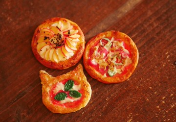 是訂單製作。照片和實物的顏色不同。大小、色調、配料等不能完全一樣地做。因為不能進行詳細的訂單。請知悉後購買。禮物的話請悠閒地購買。因為是手工製作所以強度等較差。請理解後再購買。此套餐包含三種披薩:莎拉米披薩、蘋果披薩、瑪格麗特披薩大小 披薩約3cm (有誤差,請諒解)