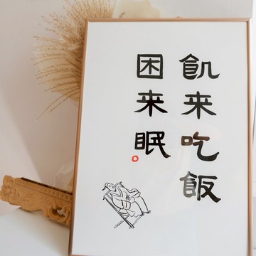 飢來吃飯困來眠中式書法極簡古風隸書裝飾畫掛畫插畫含框聖誕禮物