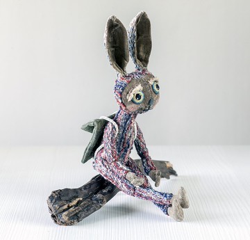 供天然羊毛木偶戲使用的野兔、兔子玩具