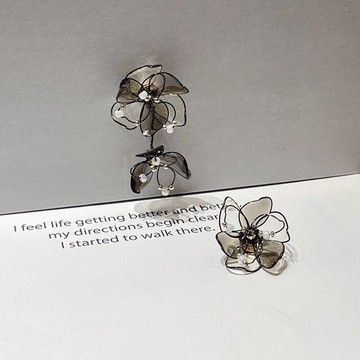 1KM 往日水墨•黑白樹脂花耳環