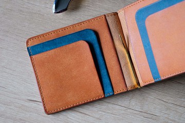 天然植鞣皮雙折皮夾