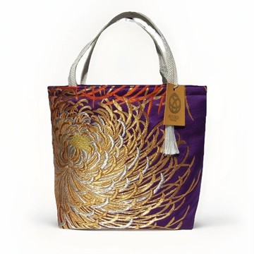 獨一無二100%絲質和服袋帶托特包 | 手工刺繡 | 日本藝術手提包