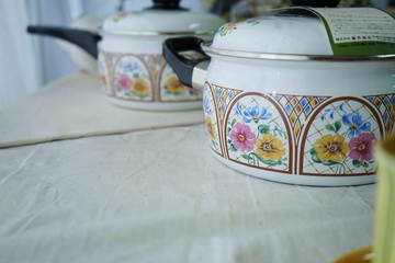 品名:日本雜貨-昭和時代全新品白色馬賽克風格花朵珐瑯硬質單柄鍋2.2L尺寸:W18cm H10cm 2.2L材質:琺瑯進口國:日本guii選物:此為老件全新品,保存良好全新品,無刮痕瑕疵,無原廠紙盒昭和時代兩手鍋具,色彩鮮艷的琺瑯鍋是雜貨迷必備,蒐羅到這些早期琺瑯壺,品項良好可以使用或收藏皆宜另有同款兩手鍋關於guii 古意雜貨小店專門販售具年代雜貨商品,下單前請詳閱商品敘述付款前先深呼吸確定能理解老物之美感後再購買,將能得到美好的購物經驗產地/製造方式japan