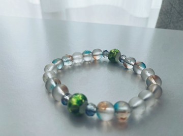 【產品資訊】尺寸:|8MM日系青綠琉璃珠|7MM 橙藍磨砂珠| |3MM捷克紫藍水晶|線材: |日本進口彈力線|【 手圍尺寸 | Size 】請用軟尺在手腕最細處,不鬆不緊地貼著手腕繞一圈,量度得出您手腕的圍度,無需自己預留空間。【琉璃工藝】https://live.staticflickr.com/65535/53159475658_e1d192f9c0_n.jpg沖繩琉璃是日本19世紀已有的手工玻璃製品。琉璃珠技法又稱為「火炬拉絲」技法,是將各色琉璃棒,在高達1000度的火焰中燒成熔軟的狀態,並藉此將熔軟琉璃纏繞在鐵棒上做造型。當做好造型的琉璃冷卻後,鐵棒抽出,成為一個穿透的洞,就能穿過繩子或金屬零件作為吊飾。https://live.staticflickr.com/65535/53159562710_58aaf7c4ac_n.jpg日本「ホタル石」,又稱沖繩螢石螢石是琉璃珠的一種,將銀箔和玻璃組合成的特殊技法所製作,因為銀箔的光澤就像是螢火蟲一樣閃耀,於是才將其取名。閃耀的深藍色如同將沖繩的美麗大海縮小放進琉璃珠裏,閃爍在每人的眼底。【夜光琉璃珠】https://live.staticflickr.com/65535/53159201024_70de5b034c_n.jpg琉璃珠本身不會發光,但當中的磷光物質在吸收日照陽光後,在暗黑能把儲存的能量散發出來,所以才能散發光茫。當察覺琉璃珠不發亮了,只要放置於陽光下吸光便可以再次發亮。琉璃珠全由技藝精湛的工匠手工製作,因此每一顆花樣都不同,才更顯獨特之美。https://live.staticflickr.com/65535/53158287937_c49c11ae76_w.jpg~~~~~~~~~~~~~~~~~~~~~~~~~~~~~~~~~~~~~~~~~~~~~~~~~~~【物流須知】[ 香港、澳門、台灣 ]使用香港郵政以小型信件形式寄出。香港地區: 寄出後預計運送時間2-3天澳門地區: 寄出後預計運送時間5-7天(如遇上海關清關檢查則需更長時間)台灣地區: 寄出後預計運送時間7-14天(如遇上海關清關檢查則需更長時間)