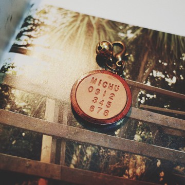寵物 木托吊牌 單面 真皮可刻英文+數字組合 可搭配鈴鐺 共3色