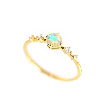 這枚戒指以一顆珍貴歐泊為主石,由四顆鑽石相輔設計而成。從歐泊的不同切割面觀察,您可以欣賞到它別樣的光彩和美麗。它也是十月的誕生石。 為了將珍貴歐泊的美豔與光澤的呈現引向極致,我們在每一處細節下功夫,請享受以各種方式佩戴這枚戒指,例如疊加戒指或與Ello系列項鏈相搭配。戒指的名字 "百合 "源自於百合花。 花語是 "純潔 "和 "精緻的美"。 名字的由來是佩戴者的形象和創造出它的設計師的名字。〜O'Ello〜系列珠寶是根據 "打開你的心和自我的鑰匙 "的設計理念,用高品質的寶石製作而成。在您的訂單下達後,請您耐心等待一個月左右的時間收貨。從下單到交貨大約需要一個月的時間。下單後將無法做出任何更改或取消訂單。請您諒解。寶石個數珍貴歐泊 x 1 (埃塞俄比亞產)鑽石 x 4 (相當於VS級)尺寸珍貴歐泊:直徑約4公釐×1/顆鑽石:直徑約1.6公釐 x 2/顆(共兩顆),直徑約1.3公釐 x 2/顆(共兩顆)克拉重量珍貴歐泊:約0.2ct x 1/顆鑽石: 0.056ct/四顆總重量戒指手臂尺寸:約1.4公釐(寬)x 0.7公釐(厚)。圖案尺寸:約4.7公釐(長)x 4.8公釐(寬)x 3公釐(高)。重量】約1.08克<歐泊>石語:希望 幸運 滋潤 十月生辰石珍貴歐泊的日文名稱是蛋白石,莫氏硬度為5.5至6.5。珍貴歐泊 "這個名字是古印度梵語 "upala "的變體,意思是珍貴的石頭。 它變成了 "Opalios",希臘語的意思是看到顏色的變化,然後變成了拉丁語的 "Opalus"。 它後來的發音就演變為了歐泊。因為它 "千變萬化",像彩虹一樣包含所有色彩,產自埃塞俄比亞的高品質珍貴歐泊十分具有魅力。 歐泊的表面若是由熟練的切割師進行刻面和拋光,便更加能使其具有獨特的美感。歐泊是十月的誕生石,是一種非常美麗和受人歡迎的寶石。 由於它的冶豔的外觀,它也被稱為珍貴歐泊,從古羅馬時代就開始流行。僅僅因為它的外觀,人們便稱,只要能夠擁有它就會得到幸福好運和快樂。因為這是一塊天然的寶石,它可能含有石頭特有的內含物(裂縫和天然物質),形狀可能略有不同。 我們已經盡可能地切割打磨並拋光了這些寶石,希望您能喜歡它們的天然魅力。石頭的顏色可能因你的智能手機或電腦的屏幕呈色而有所不同。 請在購買前注意這一點。■給正在考慮購買產品的客戶我們將免費為您呈送商品的底紙襯紙和商品保證書<關於收費包裝>我們還提供禮物的包裝服務。如果您有意選擇收費禮品包裝的項目,請額外從以下連結中購買。<標准的禮品包裝>https://pinkoi.com/product/iym4emMM<珠寶盒的禮品包裝>https://pinkoi.com/product/8c56vCX5<有RASPIA商標的珠寶盒>https://pinkoi.com/product/FJ7DRRzs