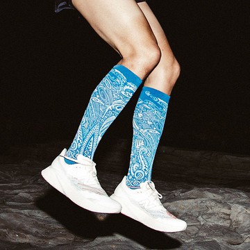 紐西蘭的毛利部落流傳著一個古老的神話,傳說毛利人的祖先是騎著鯨魚帶領著族人突破風暴來到紐西蘭,因此鯨魚代表了一種精神指標,是力量與傳統的象徵。Whale Rider (Te Kaieke Tohorā) 是一部知名的小說,後來也被改編成電影並獲得國際多項大獎,故事是敘述少女 Paikea 身處於男尊女卑的父權社會,因為性別的緣故即使能力再強也無法取得繼承人的身分,但後來發現自己居然傳承了祖先與鯨魚溝通的能力,並將擱淺在沙灘上的鯨魚帶回大海,改變了酋長根深蒂固的傳統想法。故事最後讓 Paikea 幫助鯨魚回到故鄉,如同當初鯨魚把族人帶到陸地上一樣,有著傳承與生態永續的概念,並且說明即便是重男輕女的傳統也是人類所創造出來的想法,只要心態轉念命運則有翻轉的機會。#翻轉襪設計以毛利傳統圖騰 (Moko) 的設計風格詮釋海洋生物的包羅萬象,構圖以鯨魚尾巴為首,中間的鬼蝠魟在這幅畫中比喻為鯨騎士,因為在毛利文化裡鬼蝠魟就好像巨大的斗篷一樣象徵著靈魂保護者,背後的海龜代表愛與和平,兩側鯨魚躍出水面的樣子,就好像鯨騎士默默地守護著海洋。由於毛利人與大海為家靠捕魚維生,所以身上都會配戴魚鉤 (Hei Matau) 的項鍊,加入魚鉤的設計是希望擁有這雙襪子的人都能夠擁有好運。襪子翻轉後,我們將毛利人特有的 Raranga (編織藝術)加入設計中,Raranga 在毛利文化中佔有很重要的地位,毛利人會用50多種不一樣的 Harakeke (紐西蘭亞麻)來製作傳統服飾、裝飾品、藝術品或是裝載魚貨的籃子,在這裡我們想表達魚貨滿滿,年豐時稔的意思。**WHY FLIPPOS?**FLIPPOS翻轉襪最初的想法就是,打造出一雙全能壓力襪,適合上班穿搭,下班後直接去運動,也能夠一襪到底。考量現代人的工作型態多為久坐、久站,導致足部及小腿感到不舒服,透過壓力襪從腳底板到小腿施加「漸進式壓力」來改善這個狀況。另外,在運動時著用翻轉襪能有效減少肌肉的振蕩,產生更大的運動力,並且提升運動後的疲勞恢復速度。**FLIPPOS 迷宮襪底緩衝系統MCP (Maze Cushioning Plus)**追逐產品的極致是FLIPPOS的終極目標,這次我們將原本的獨家迷宮襪底升級,強化腳底的**「針織迷宮阻尼」**,不論是軟硬度或是回彈的速度都有明顯的提升,因此在跑步、跳躍或是爬山時,顯著的避震效果讓力量不流失,運動力完全釋放。https://live.staticflickr.com/65535/51943103811_711b676941_b.jpg**翻轉長度、翻轉態度**為因應任何場合、任何穿搭,翻轉襪獨創反折壓力襪,可穿至膝蓋下方,或者反折至小腿肚,一秒長襪變短襪。★翻轉前長度: 膝下★翻轉後長度: 腳踝上 18cmhttps://live.staticflickr.com/65535/51613650953_c396c74c98_b.jpg**FLIPPOS翻轉襪適用範圍**日常穿搭、運動前後穿著(跑步、單車、滑板、登山、體能訓練等)、旅行、搭乘長途飛機,或是懷孕前後改善雙腿等不適。**FLIPPOS翻轉襪主要功能**✔這是一雙機能壓力襪✔藝術保存、文化傳承✔一秒改變長度,長襪短襪二刀流✔舒緩久坐、久站的不適✔紓解日常生活壓力、增加運動力✔增加運動後恢復的速度✔夏天不悶熱、寒冬雙腳也保暖✔快乾排汗,穿一整天襪子也乾乾的✔科技尼龍,觸感比擬埃及棉✔銀纖維抗菌,連穿3天也不臭✔耐洗、耐穿,彈性不鬆脫✔驕傲的台灣製造https://live.staticflickr.com/65535/50289127247_30fcd6b6f4_b.jpg**FLIPPOS翻轉襪**FLIPPOS翻轉襪壓縮值落在15-25mmHG,屬於日常使用等級,並非醫療用品,因此不需要醫療認證。**FLIPPOS 翻轉襪-埃及棉觸感&銀離子**翻轉襪主要材質為科技尼龍混Lycra萊卡紗,此材質比一般精梳棉昂貴4倍之外,主要功能為快乾排汗並且觸感比擬埃及棉,另外腳底部分加入銀離子除臭技術,不會因時間或洗滌次數而降低效果。85% Nylon 科技尼龍7% Lycra 萊卡4% Cotton 純棉2% 彈性纖維2% Silver Fiber 銀離子/除臭常見襪子普遍問題:https://live.staticflickr.com/65535/50288303428_c66b81900c_b.jpg**襪口鬆脫**一般常見的襪子襪口鬆脫有以下可能採用綿的材質居多彈性纖維的材質較差收納方式收納方式清洗晾乾方式**外型單調**由於圖案複雜容易造成襪子厚度不均,壓縮值不穩定,故一般市面上壓縮襪大多外型單調素簡。**易起毛球**市面上襪子多使用純棉材質為主,經過磨擦與洗滌後襪底易起毛球。**襪子破洞**襪子品質以及走路姿勢不良皆易造成襪子(跟)破洞的問題。**未使用無縫線編織技術**襪子在編織完後,腳趾與襪身結合處會有一處開口,需要封起來才能穿著。這個封起來的動作就叫【無縫線編織技術】,壓壓看襪子封畢後的厚度,愈平整穿起來愈舒服。**清洗建議**建議您最佳的洗滌方式為手洗,可延長產品壽命。使用後應盡快進行正確的清潔保養。水溫請低於30℃,使用中性洗劑(PH值介6-8之間)勿使用漂白劑、螢光增白劑及衣物柔軟劑。對自用洗衣劑是否會造成褪色之疑慮者,請先單獨洗滌。機洗建議請使用衣袋以延長產品壽命及品質,手洗請勿大力搓揉摩擦。深淺色請分開洗滌,請勿浸泡。請勿乾洗。採用陰乾的方式較佳,因為彈性機能性產品遇到高溫有可能產生變形或縮水現象,故較不建議使用烘乾機與吹風機等高溫方式。**晾乾建議**採用陰乾的方式較佳,因為彈性機能性產品遇到高溫有可能產生變形或縮水現象,故較不建議使用烘乾機與吹風機等高溫方式。**注意事項**於收到商品當天往後推算7日即為消保會許可之鑑賞期,7天鑑賞期內如需退、換貨,需保持商品吊牌完整,一經拆封