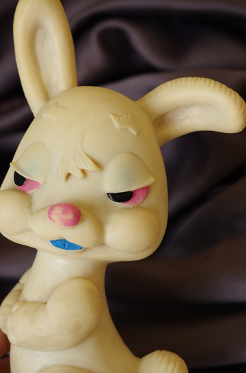 超級可愛的老塑料軟膠玩具,按下去還有啾啾聲。兔子表情很有戲。尺寸: 最長20x最寬9公分,深度7公分。* 清潔方式-使用乾布擦拭。-勿使用拭銀布,『不可以』戴去海邊及泡溫泉,也不能戴著在雨中起舞。-戴完請清潔後,放在夾鏈袋保存。-存放地點請保持乾燥。*小叮嚀賣場每一樣商品都是檢查過,確定使用正常才會販售,故無法因為個人因素退款退貨哦。因攝影的光線及每台電腦顯示不同,照片與實品顏色都會有些許落差。如有其他問題請不用害羞,直接聯繫我哦!謝謝點閱。